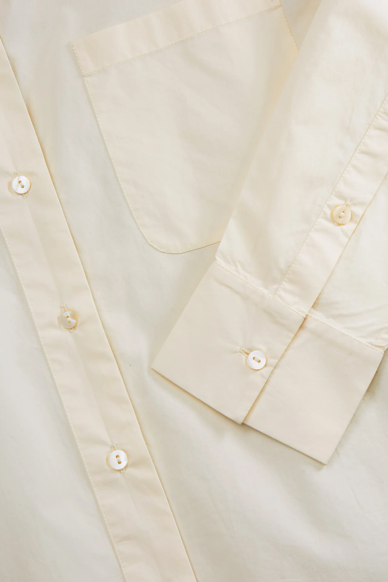 Classic shirt with collar, button front, chest pocket and longer curved back hem.