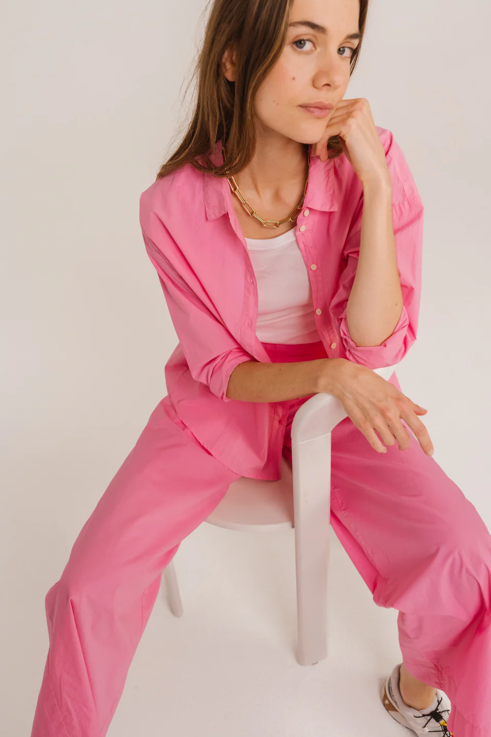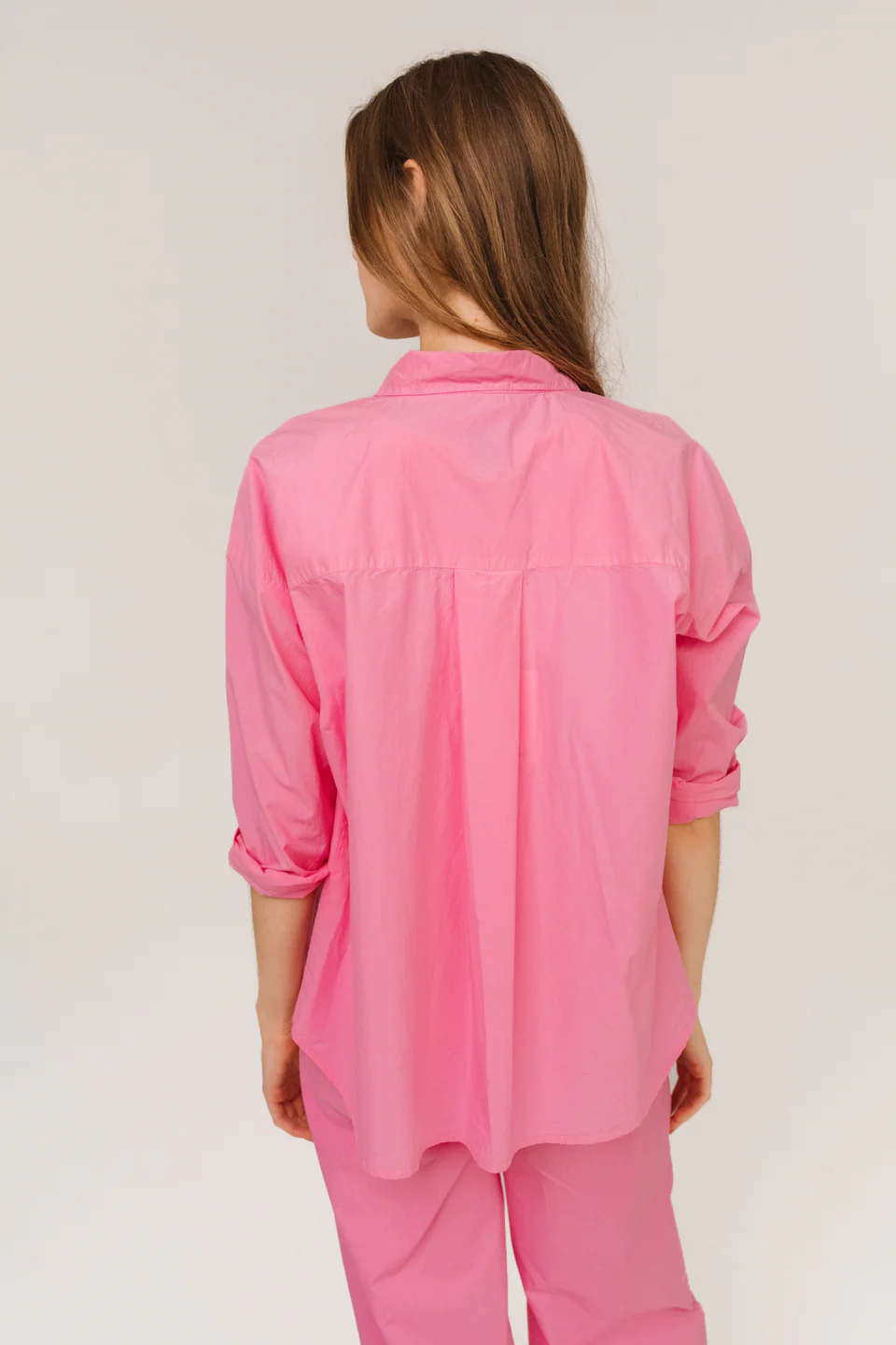 This relaxed-fit cotton poplin shirt combines timeless tailoring with contemporary ease. The loose silhouette features a discreet back pleat for fluid movement and an unstructured drape. A classic collar, visible button front, and patch chest pocket anchor the design, while buttoned cuffs and a concealed placket add refined detail. Long sleeves and a neutral palette make it a versatile foundation piece for layering or wearing solo.
