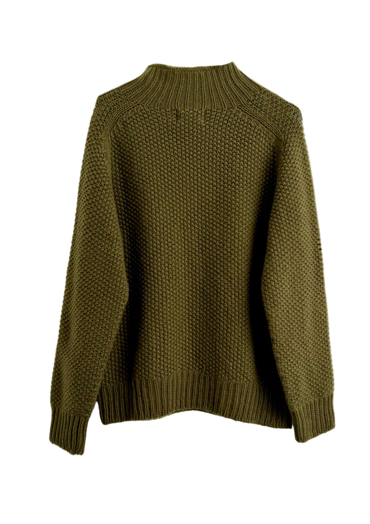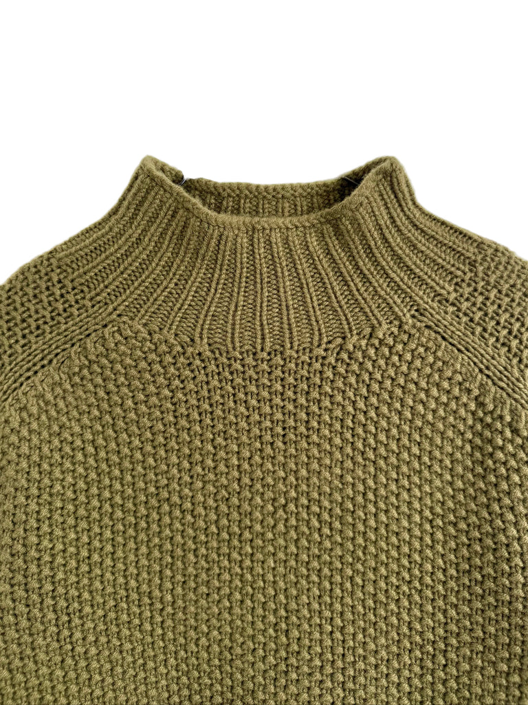 Moss Stitch Superfine Lambswool Roll Collar - Olive