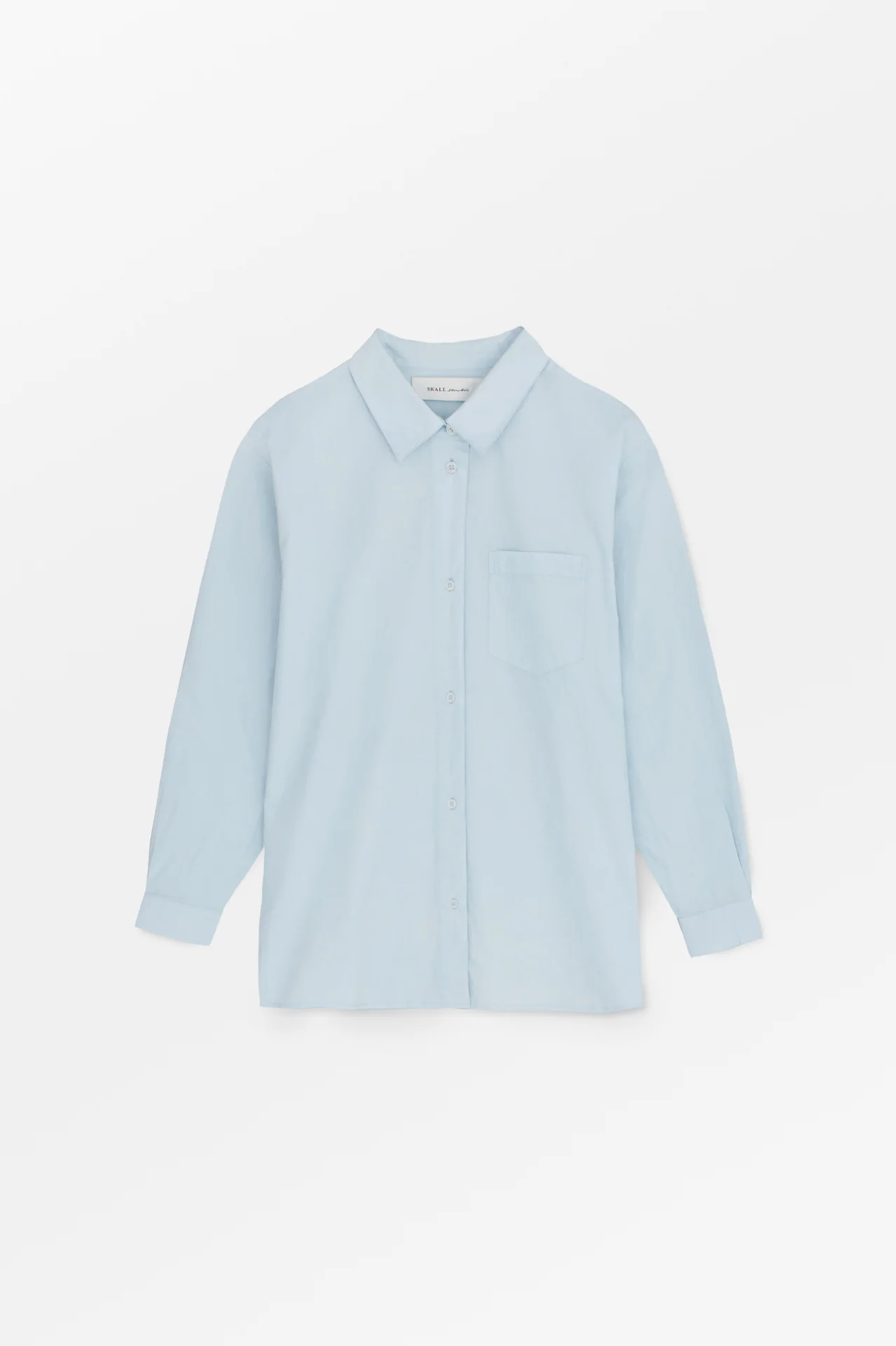 Edgar shirt is an oversize menswear inspired shirt crafted from organic cotton poplin. The shirt has a regular collar, long sleeves with buttoned cuffs and a button-down front. It has a chest pocket and a yoke with wide pleats at the back.